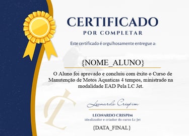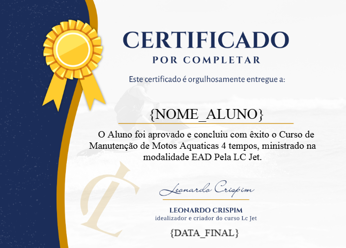 Jet ski parado é dinheiro perdido. O curso LC Jet te dá o conhecimento técnico para identificar, entender e resolver na hora certa, sem depender de ninguém.